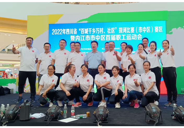 7月9日,由内江市市中区总工会、内江市市中区教育和体育局联合举办的2022年四川省“百城千乡万村、社区”比赛赛区暨市中区首届职工运动会拔河比赛在吾悦广场如火如荼地进行。全区各机关、镇(街道)、学校49支代表队1200余人参赛。