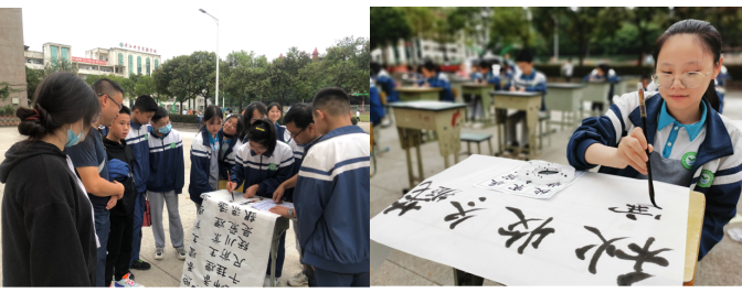 9月22日下午4点30分,开江中学实验学校所有班级近400名师生汇聚于校园红光楼广场内,同学们有序入座,三大方队整齐而壮观,只为迎接这激动人心的“开江中学实验学校第八届艺术节现场书法大赛”。在学校领导及师生们共同努力下,本届现场书法比赛有300多名学生参加。