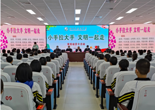 为深入贯彻习近平总书记关于社会主义精神文明建设的重要论述,进一步提高学生文明素养,养成文明习惯,把文明带进家庭、引向社会,10月28日下午,达川中学在华蜀校区和三里校区同时开展“小手拉大手,文明一起走”家校动员令活动。