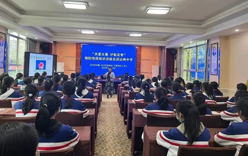 启动仪式后,达川区家庭教育促进会副会长、深圳幸福家家庭教育讲师、《道德经》高心灵书院认证讲师王雪为同学们讲授题为“让青春的花蕾更美丽”女中学生青春期教育课堂,拉开了本次达川区家庭教育五进暨家风家教巡讲活动帷幕!