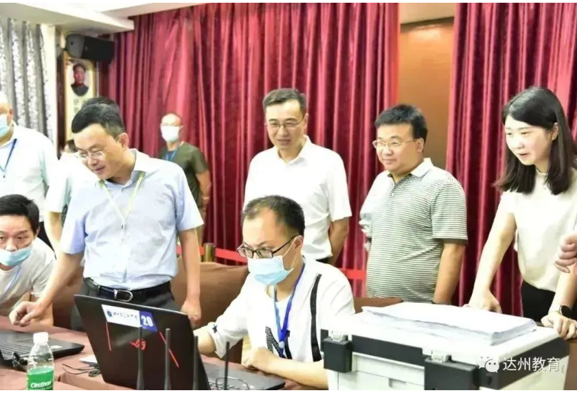 (6月14日,市委教育工委书记、市教育局局长邓剑率队到我校检查指导2022年中考工作)