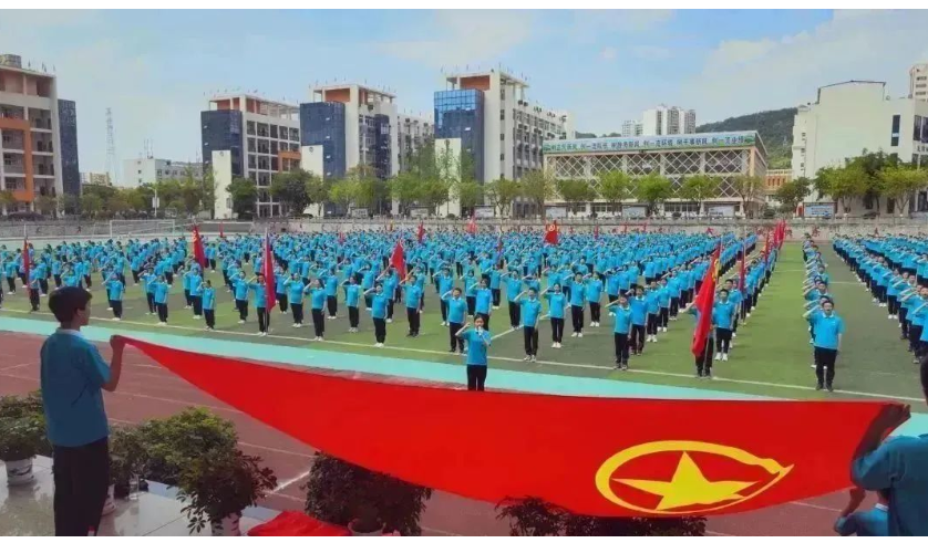 (10月10日,达州中学线上线下同步举行“喜迎党的二十大”主题升旗仪式)