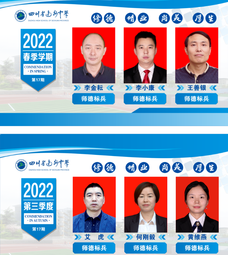2022年是达州中学“师德师风建设深化年”,全校开展一系列宣传教育活动,各级师德表扬共计317人次。通过网络形式开展“最受学生喜爱老师”、“最受家长认可老师”、“优秀班主任”等评选活动,得到了学生家长和社会的广泛赞誉。其中,郝仁平老师援彝支教的先进事迹短视频在全市宣传推广,优秀青年教师谭静“走好最朴实的教育人生路”的主题演讲在全区“三德”教育动员大会上获得高度肯定和认可。