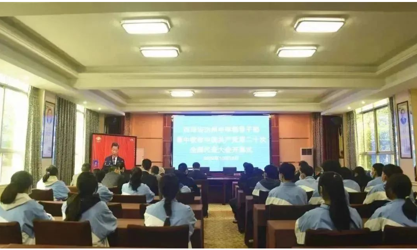 (10月16日,四川省达州中学组织收看中国共产党第二十次全国代表大会盛况)