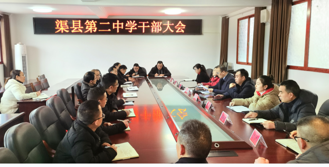 2月14日,渠县第二中学党委召开全体干部大会,宣布了县委组织部关于校级领导干部的任免决定,对领导班子成员进行了工作分工,党委书记糜高峰对新任干部进行了交心谈心。