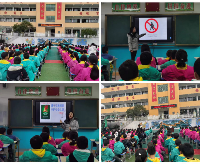 学校杨校长做了动员讲话:希望全校师生从自己做起,增强自身交通安全意识,在全校形成“关爱生命、文明出行”的良好氛围。学校安办开展了交通安全讲座,从步行、乘车、骑行上下学三个方面讲解了不同交通方式需要注意的交通安全问题,并呼吁在校师生不乘坐无牌无证、超员超载的机动车,自觉养成遵守交通安全法律法规的好习惯。各班通过交通安全主题班会学习交通安全知识、学认交通安全标志、学唱交通安全歌谣等教育形式,让学生牢固树立遵守交通规则的意识,牢记安全守则,做一个遵守交通规则的好孩子。此外,学校还将通过《关于交通安全致家长的一封信》、板报、安全教育平台专题活动、图片展示等多种形式对学生进行交通安全教育。