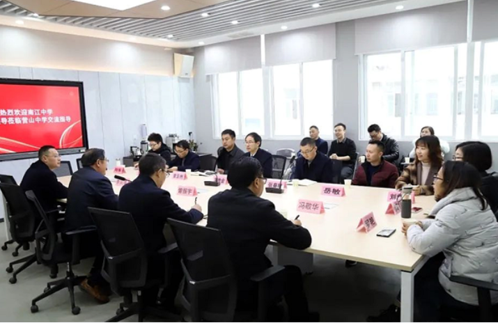 2月18日,四川省七一南江中学一行9人前往营山中学,就大数据精准教学及学生发展指导工作进行交流研讨。