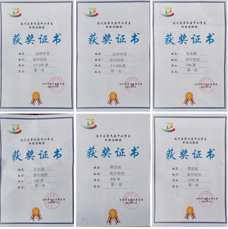 达川区第九届中小学生田径运动会于3月29日落下帷幕,达州中学田径队囊括初中组、高中组两个团体冠军,并获得优秀组织奖。