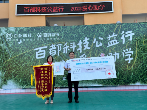 公益助学源于心,爱心奉献在于行。2023年7月5日上午,成都百都科技有限公司爱心助学大型捐赠活动在宣汉县普光镇土主小学隆重举行。百都科技公益行的足迹遍布四川各乡镇中小学校。此次捐赠中,成都百都科技有限公司为土主小学的师生捐赠电脑30台,学习用具和体育用品一批,助力孩子们健康成长,扶贫助学,让更多的孩子们享受更优质的教育,用知识改变命运。为了表示心中的感激之情,土主小学的孩子们现场跳起了欢快的腰鼓舞。