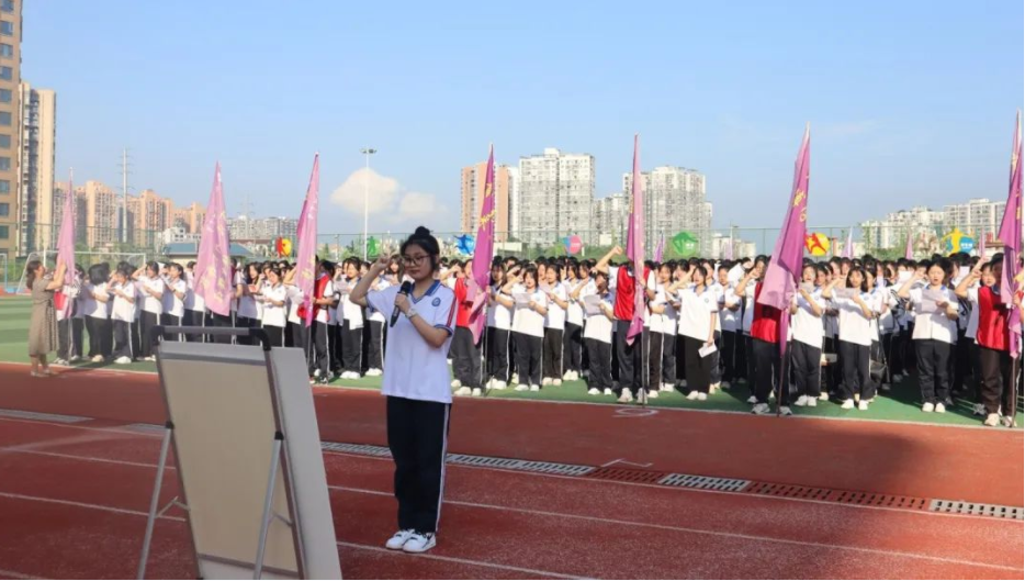 教师代表何佳佳向同学们发出备战的号令,她说,高三虽苦,但你们并不孤单,在接下来一年的时间里,我们都将与你们一起拼搏,一起挥洒汗水,一起迎接人生中最重要的一次战役!老师永远是你高考备考中坚强的后盾,让我们携起手来,共创2024年的高考传奇!