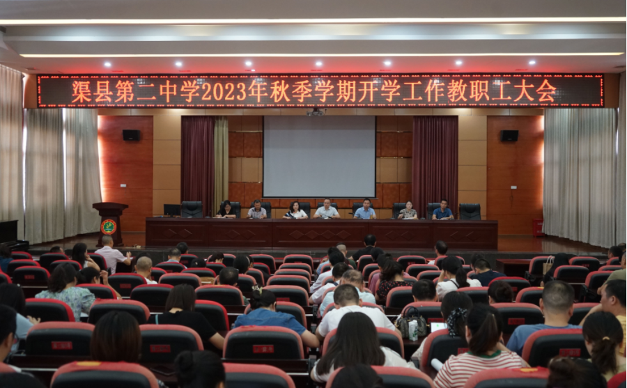 8月30日,渠县第二中学召开2023年秋季开学教职工大会。会议组织了政治学习,开展了警示教育,传达了相关会议精神,布党委委员、副校长汤陆钦主持会议。