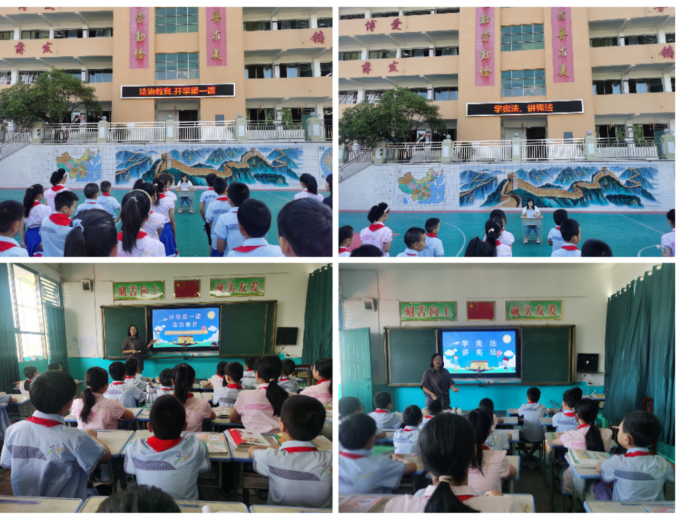 开学典礼上,全体师生听取了主题为“法治教育---开学第一课”的专题讲座,讲座由学校安办主任潘莉担任主讲老师,潘主任用风趣的语言深入浅出的向全体师生介绍了什么是宪法以及学习宪法的重要性。通过互动交流等多种形式,结合真实案例,围绕防范电信网络诈骗、反校园霸凌、道路交通安全、消防安全、防溺水安全等内容进行详细讲解,引导和教育广大师生既要遵纪守法,又要懂得维护自己的合法权益,学会自我保护与自我防范。通过本次讲座,把安全法治观念深入到了每一位师生心里。