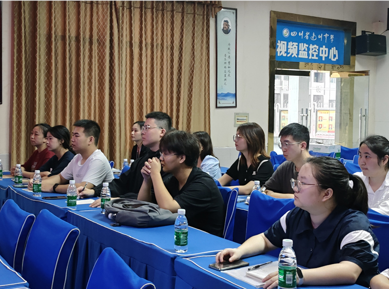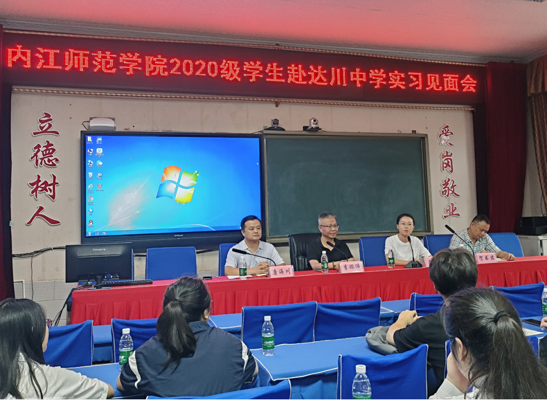 王莉介绍了达川中学的发展历史和现在的基本情况,希望各位实习生把握好青春大好年华,珍惜实习的美好时光,把大学学到的专业知识与教学实践紧密结合,做到“知行合一”。