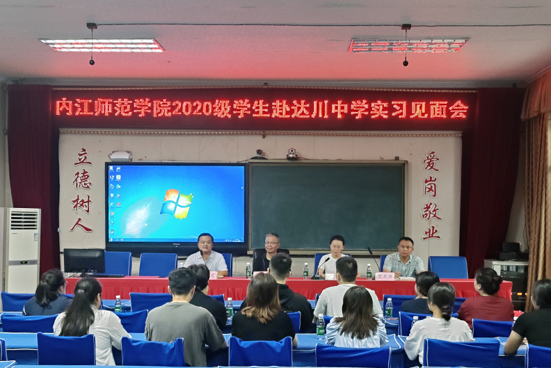 9月11日上午,达川中学在华蜀校区视频会议室举行内江师范学院2020级学生实习见面会。教科处主任王莉、学生处副主任贺书军,实习生领队老师、内江师范院张大千美术学院副教授李鹏伟,以及参加实习的16名学生一同参加了会议。教科处副主任唐海川主持会议。