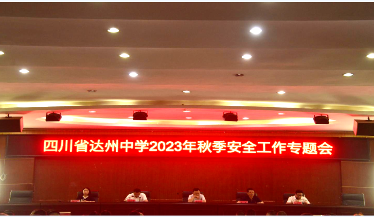 9月13日, 四川省达州中学2023年秋季安全工作会在翠屏校区艺体馆一楼大会议室举行,校长郭德波等校领导以及翠屏校区全体班主任参加会议。学校党委副书记彭仁俊主持本次会议。