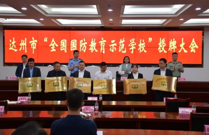 活动为达州市第一中学校、四川省达州中学、四川省达川中学、四川省万源中学、宣汉县第二中学、渠县琅琊镇中心小学6所“中小学国防教育示范学校”进行了集中授牌。