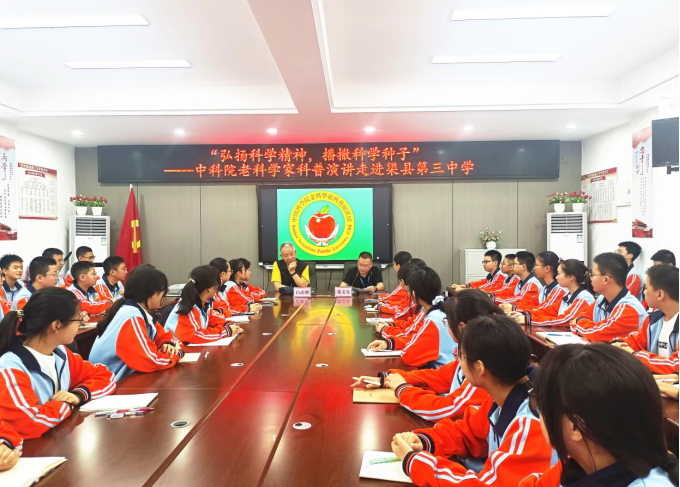 为进一步贯彻落实国务院《全民科学素质行动计划纲要(2021-2035年)》文件精神,弘扬科学精神,普及科学知识,激发少年的科学梦想和科学志向,9月28日上午,中国科学院老科学家、科普演讲团团长白武明教授来到渠县三中,在多功能会议室开展了以《地球的内部探秘》为题的科普讲座。此次讲座由渠县第三中学党委书记郑文东主持,部分领导、班主任和八年级学生参加了这次活动。