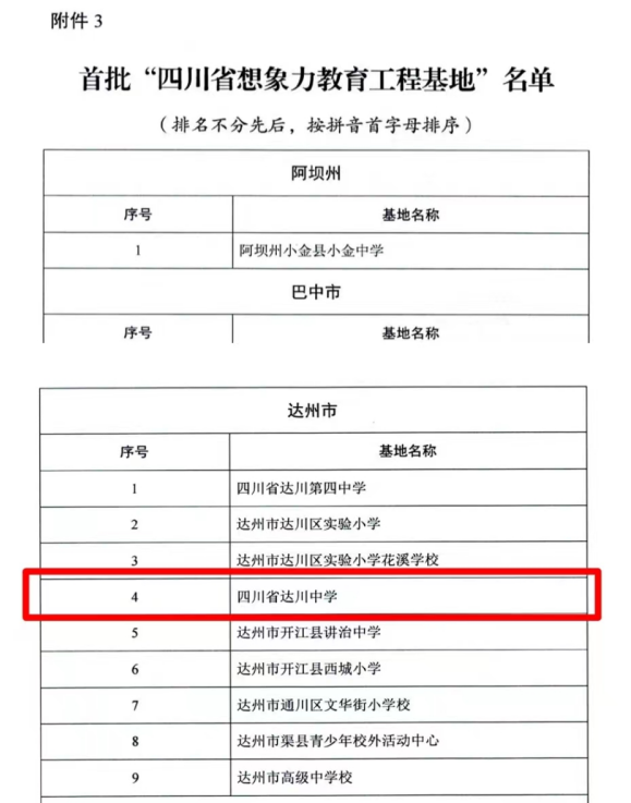 四川省达川中学成为首批“四川省想象力教育工程基地”