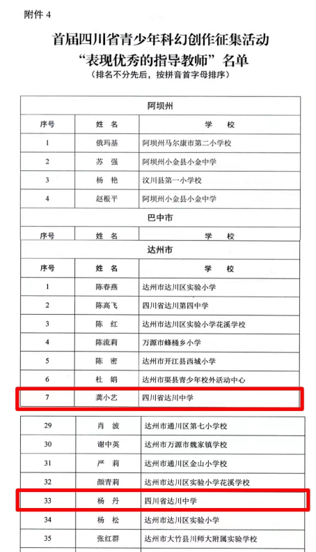多年来,达川中学十分重视科技创新教育,积极搭建丰富多彩的平台引导学生创新发展,鼓励学生参与各类科技创新活动,努力提高青少年的想象力和创新能力。此次荣誉的获得既是对达川中学科普科幻、创新教育的肯定,也是对川中学子想象与创新能力的肯定。未来,学校将继续激发学生的创新思维,培养科学素养,陪伴学子们在未来的科幻创作中继续踏浪前行。(杨丹)