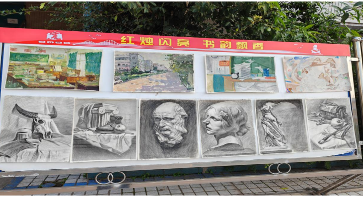 此次“红烛闪亮 书韵飘香”元旦师生书画展不仅为师生提供了一个展示才华的平台,也加强了校园文化建设,提升了师生们的艺术素养。活动筹备期间,学校团委、体艺卫号召各班级、各教研组积极参与,师生们共同策划、布置展览场地,确保了活动的顺利进行。