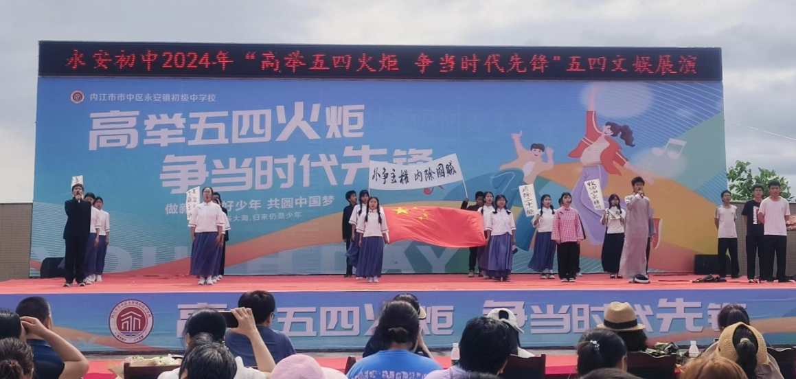 为纪念“五四”运动,弘扬爱国、民主、科学精神,激发青年学生爱国热情,使学生们德智体美劳全面发展,4月29日,内江市市中区永安镇初级中学校举行了“高举五四火炬,争当时代先锋”五四成果展演活动。