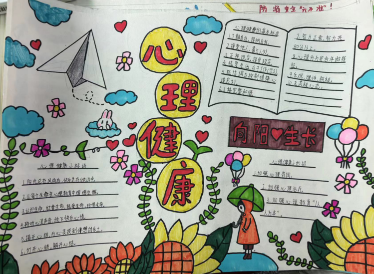 创编手抄报:每班创编一期以“珍爱生命、发现美好”为主题的黑板报,学校进行评比,评选出了一、二、三等奖,优秀作品在学校宣传栏展示 。