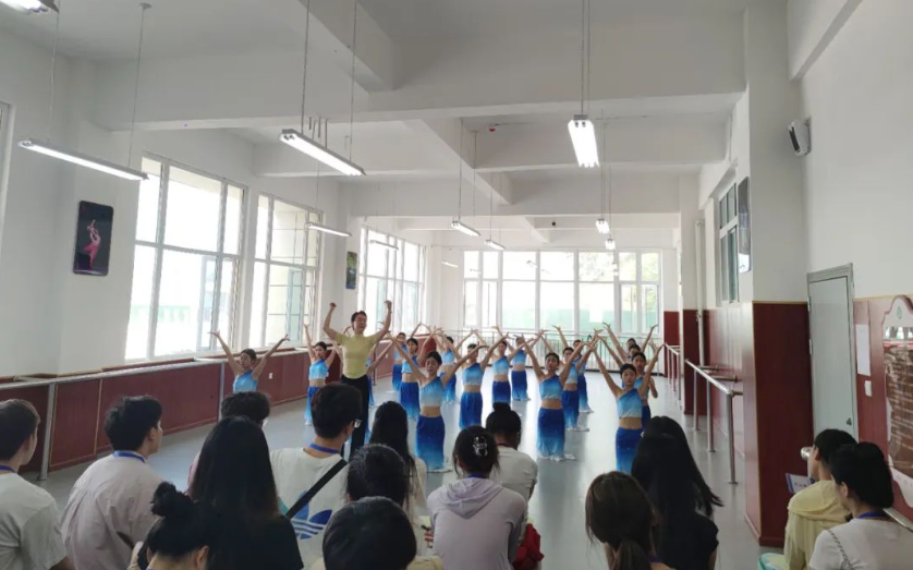 6月14日,骄阳似火,达县职高职教园校区迎来了四川文理学院音乐与演艺学院舞蹈专业首批五十余名师生,现场举行了四川文理学院与四川省达县职业高级中学“共建教育见习基地”启动仪式。文理学院音乐与演艺学院副院长冉明,达县职高党委副书记、校长胡泰然,相关科室、校区负责人及教师代表参加仪式。 胡泰然发表了满腔热忱的欢迎辞,介绍了达县职高的基本概况,并就教学见习的意义、提升专业素养等作了交流发言。指导教师代表汪丽从在文理学院学习的经历出发,分享了在达县职高工作十三载的感悟,并对接下来的见习工作、生活作了简要的安排。 冉明介绍了文理学院音乐与演艺学院的发展沿革,升学、就业等基本情况。对参与教学见习的舞蹈专业学生提出了要求与期待,要求见习学生服从指导、遵守制度、认真教学、积极参与,期待展现当代大学生的素养,志存高远,为舞蹈艺术事业的发展贡献力量。 仪式结束后,汪丽上示范课——《傣族表演性组合》,从基本姿势、步伐,到动作的准确、节奏的把握、情感的表达等作了精彩的呈现,获得了阵阵掌声。课后交流环节,汪丽耐心解答了课堂教学、专业动态以及就业等相关问题。 共建教学见习基地,为学生提供了实践机会,促进了产学研的深度合作,有利于合作学校教育教学质量的提升和学生就业竞争力的增强。(文/何程 审/张方毅 图/郭辉)