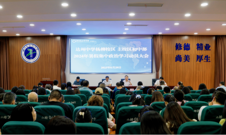 为动员全体教师树师德、立师表、强师能、正师风,以饱满的工作热情和一流的工作业绩,推动达州中学高质量发展,全面提升队伍政治素质,加强师德师风建设。6月29日开始,达州中学两校区初中部在杨柳校区集中开展为期7天的2024年暑假政治学习活动。 本次暑假集中政治学习安排了七大方面的重点学习专题,深入学习习近平新时代中国特色社会主义思想、习近平总书记关于教育工作的重要论述。深入开展党纪学习教育、教育法律法规专题学习、师德师风专题学习、安全教育、党史学习教育,开展教职员工性侵和其他违法犯罪信息查询工作。 会议强调,加强政治修养和师德师风建设,是办人民满意教育的迫切需要,是提升学校形象的迫切需要,是提高教书育人本领的必然要求。 会议要求,全校教师在政治学习过程中要加强组织领导、注重学习质量、强化督导落实。政治学习结束后更要以先进为榜样,积极发挥党员先锋模范作用,带头讲政治、讲大局、转作风、提能力、抓落实、守底线,为达州中学的发展贡献力量。 通过政治学习动员大会的举行,全体教师不仅深化了政治学习,提高了思想觉悟,还激发了积极向上的精神风貌和工作热情。这对于推动学校的全面发展、提高办学质量和水平具有重要意义。会议后学校将进一步贯彻落实大会精神到日常教学和管理工作中。(撰稿:马淑华)