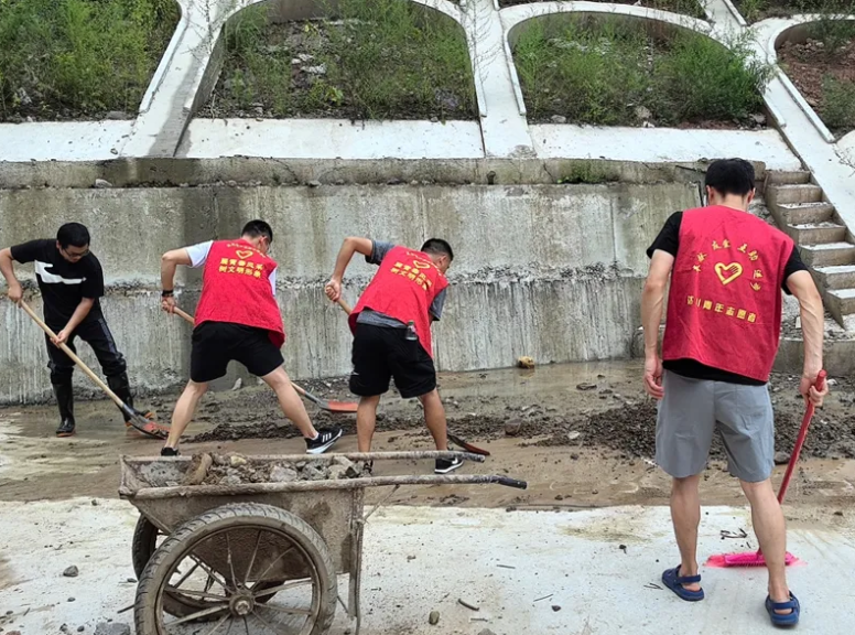 到达清淤现场后,面对一片狼藉的街道,志愿者们快速行动,有序分工,手持铁锹、洋铲、扫把等工具,全力以赴投入到清淤工作之中。一件件红色志愿服穿在身上更在心上,尽管泥浆沾满衣裤,泥水溅满脸庞,汗水浸湿衣裳,老师们仍热情高涨地投入忙而有序的清淤工作,充分发挥了不怕脏、不怕苦、不怕累的奉献精神。经过3个多小时的奋战,覆盖在道路上的淤泥被清理干净,道路逐渐恢复了原来干净、整洁、畅通的模样。