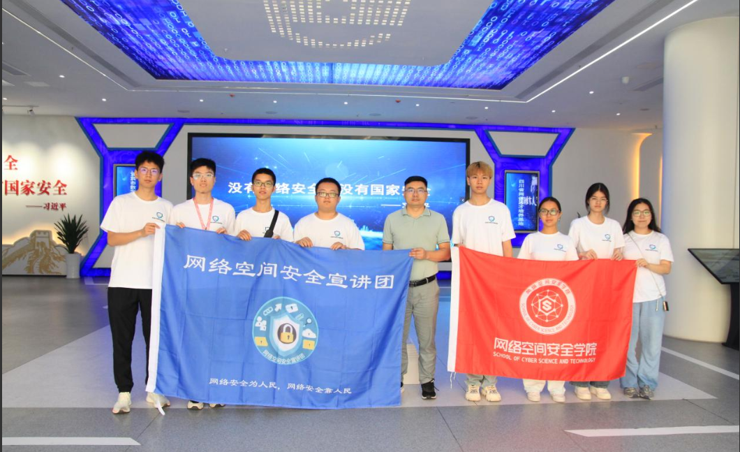 7月5日下午,北京航空航天大学网络空间安全宣讲团赴四川省网信人才培养基地,参观网络安全科普展示厅,亲身感受宜宾市网络安全服务的守正创新。科普展厅参观结束后,宣讲团成员针对调研主题,与四川数安网信总经理黄锦飞进行交流。