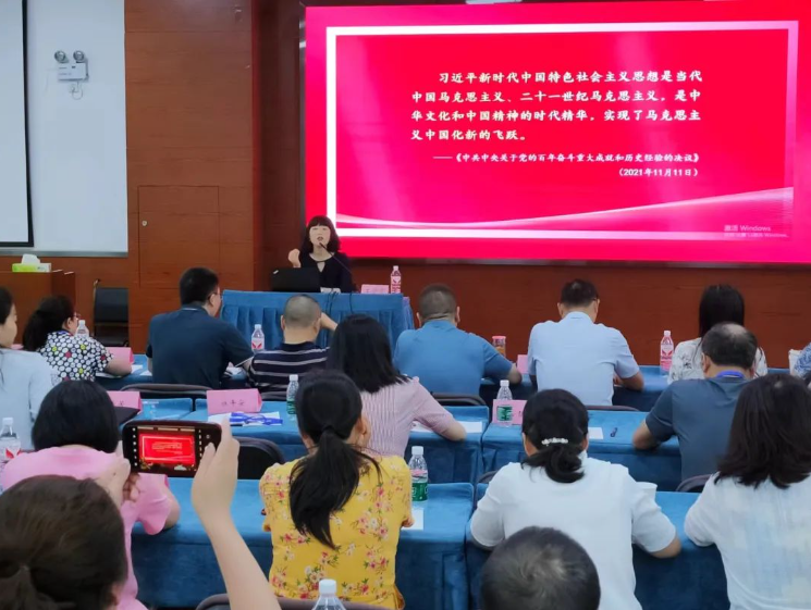 习近平新时代中国特色社会主义思想是如何创立的?”“习近平新时代中国特色社会主义思想回答了什么重大时代课题?”“习近平新时代中国特色社会主义思想主要包含哪些内容?”“如何学好用好习近平新时代中国特色社会主义思想?”下午,四川交通职业技术学院公共课教学部主任、教授王蓉霞从问题入手,解读了习近平新时代中国特色社会主义思想的丰富思想内涵和强大实践伟力。她强调,习近平新时代中国特色社会主义思想是当代中国马克思主义、二十一世纪马克思主义,是中华文化和中国精神的时代精华,实现了马克思主义中国化新的飞跃。