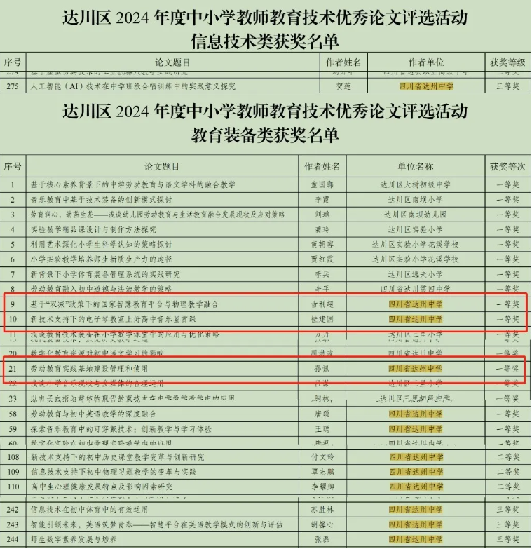 【喜讯】达州中学荣获多个奖项!达川区中小学教师教育技术优秀论文评选名单公布