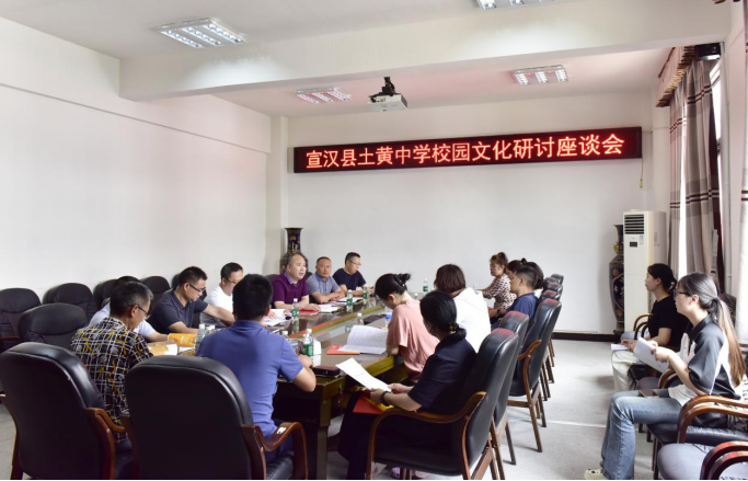 8 月 10 日下午,在宣汉县土黄中学会议室成功举办了一场校园文化研讨座谈会。本次座谈会旨在深入探讨如何进一步丰富和提升校园文化内涵,营造更加积极向上、富有特色的校园文化氛围以及对前期视觉识别系统方案进行再次商讨。本次特邀北京大学文化产业院院长向勇教授一行做指导性建议。