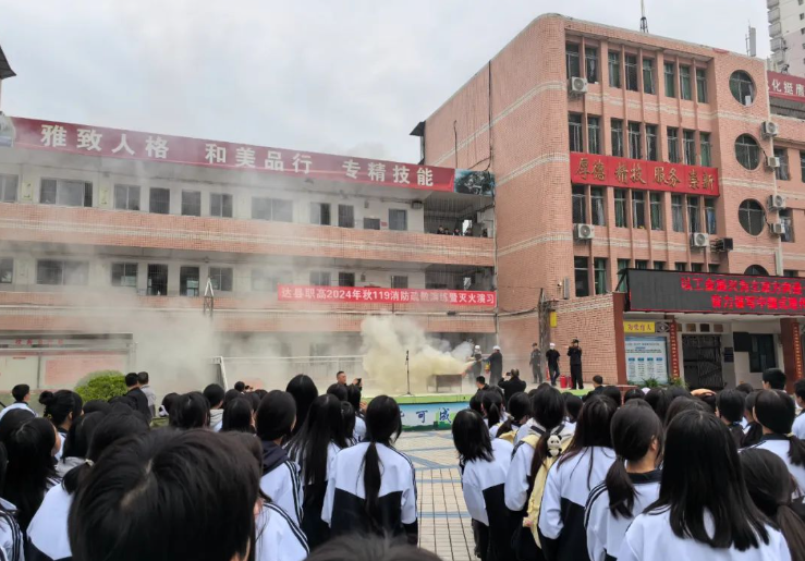 为了进一步加强校园消防安全工作,提高师生的消防安全意识和自救互救能力,近日,四川省达县职业高级中学以学生宿舍火灾突发事故为预设场景,进行了一次消防疏散演练暨灭火演习。