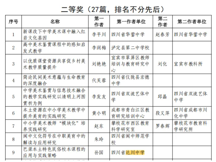 祝贺!四川省达川中学教师在省、市级论文评选活动中获奖