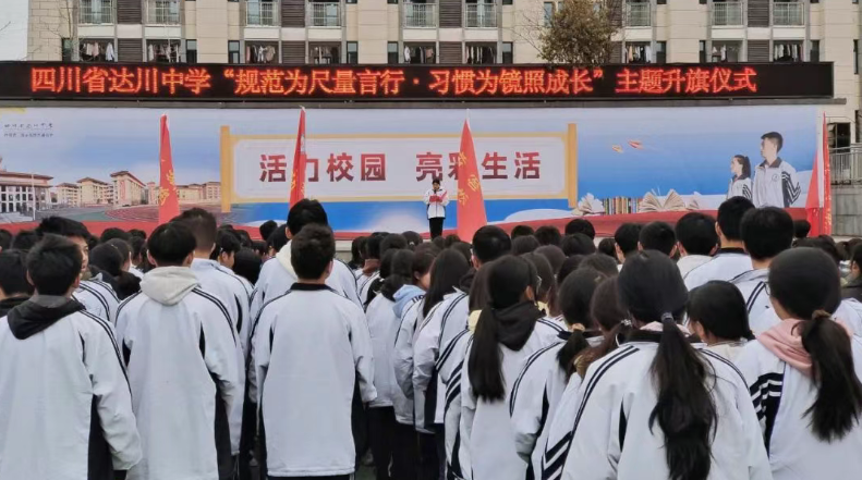 达川中学举行“规范为尺量言行,习惯为镜照成长”主题升旗仪式