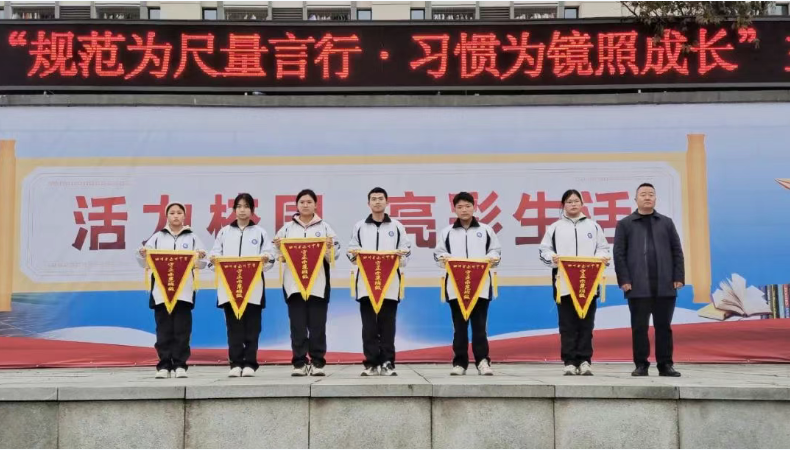 为加强川中学子行为习惯养成教育,全面提高学生综合素质,创建“蒙以养正、向善而行”的良好班风、学风和校风,2月24日上午,四川省达川中学举行了“规范为尺量言行,习惯为镜照成长”的主题升旗仪式。 清晨,伴随着初升的朝阳,升旗仪式正式开始。在雄壮的国歌声中,五星红旗冉冉升起,迎风飘扬。全体师生庄严肃立,行注目礼。 随后,学生代表在国旗下演讲。华蜀校区初二·8班的王洁萌同学以“学规矩,促习惯,共筑美好未来”为主题,从三个方面阐述了中学生应该如何做到学规矩,促习惯。三里校区初二·19班李熙同学则分享了自己在学习和生活中如何践行规范、培养习惯的心得体会。她表示,良好的习惯不仅有助于提高学习效率,还能提升个人素质,帮助同学们更好地面对未来的挑战。 接着,学生处主任吴志德、副主任贺全福强调了规范言行和培养良好习惯的重要性,指出“规范是行为的准则,习惯是成长的镜子”。鼓励全体学生以规范为尺,严格要求自己,养成良好的学习和生活习惯,为未来的成长奠定坚实的基础。 仪式最后,学校对上周荣获“守正示范”班级进行了表扬,副校长孙仁成和学生处主任吴志德分别为他们颁发了流动红旗,并希望全校各班以他们为榜样,积极进取,追求卓越。 规范如尺,丈量我们的文明高度;习惯如镜,映照我们的成长轨迹。此次主题升旗仪式,不仅增强了学生的规范意识和习惯养成意识,也为全校师生提供了一个反思和提升自我的机会。达川中学将紧紧围绕“立德树人”的根本任务,培养更多德智体美劳全面发展的优秀学子。