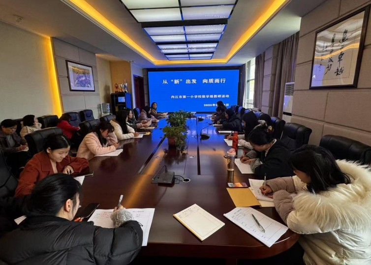 为更好落实“双减”政策,进一步提高教育教学质量,优化教学方法。2025年2月26日,内江市第一小学校在会议室开展了以“从新出发 向质而行”为主题的数学教研活动。本次活动由数学教研组长主持,全体数学教师参与,共同探讨教学质量提升的新路径。