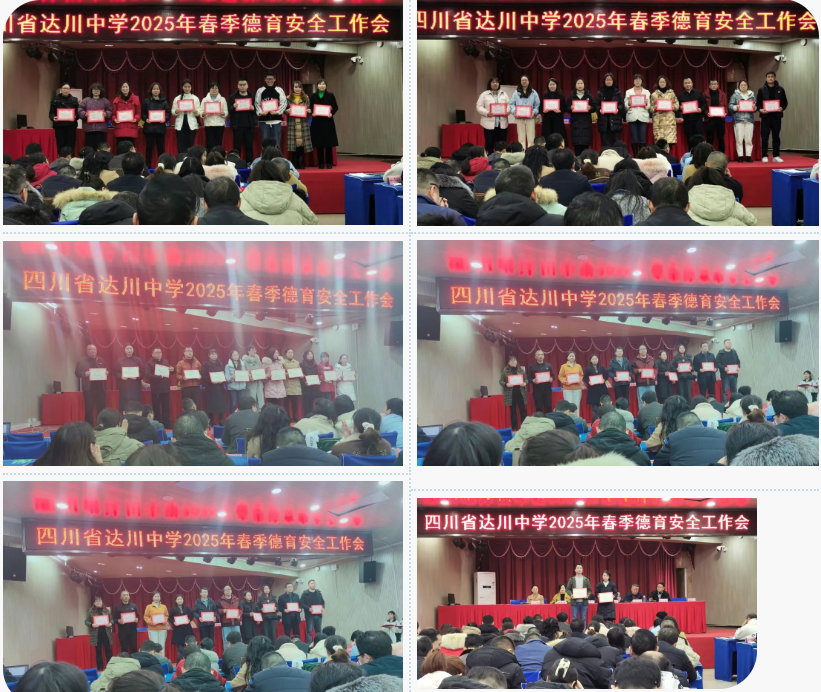 3月5日下午,四川省达川中学2025年春季德育安全工作会议在华蜀校区学术报告厅举行,会议由分管德育安全工作的副校长周炀主持。 安全办公室主任李良军总结了2024年秋季安全工作:一是高度重视,措施有力;二是制度保障,举措到位;三是畅通信息渠道,规避风险;四是加强管理,与消防、公安、社区合作形成合力;五是加强隐患排查,及时整改;六是开展安全教育系列周活动;七是系统性开展交通安全、防溺水安全、防电信诈骗安全、防校园欺凌、防性侵等安全教育。他对本期安全工作重点作了说明。一是严格落实安全平台教育任务,二是校园值班要细化落实,三是落实门禁管理,四是加强隐患排查,五是密切家校联系,六是多渠道多形式开展安全教育。他还公布了2025年春季各月安全教育主题。 随后,学生处副主任贺全福总结上期德育工作并布置本期德育工作。他指出,当前德育工作存在教育前置力度不够,教育深度不够的问题。2025年春季德育工作要点:一是落实每月主题教育,深化德育内涵;二是规范学生行为,强化日常管理,卫生习惯 、手机管理、早恋与欺凌、发饰仪表等;三是关注学生心理,筑牢健康防线;四是营造班级文化,打造育人环境,美化教室,开展"书香班级"创建、绿化教室等;五是加强家校协同,凝聚共育合力;六是落实值日管理,细化责任分工;七是加强师德修养,树立师表示范;八是提高活动质量,注重育人实效。他指出,只要我们把学生当成自己的孩子对待,把学校看成自己的家,相信学校一定会发展得更好。 会上,对2024年下期德育安全工作的作出优异成绩的老师进行了表扬。学校党委专职副书记张莉萍,党委委员、副校长孙仁成、邓智峰、周炀、王莉分别宣读了四川省达川中学2024年秋安全管理先进个人、德育工作先进个人、优秀心理辅导员、优秀班主任、家访先进个人的表扬决定,并为获奖老师颁发了奖状。 会上,学校党委副书记、校长代旭东就德育安全工作提出要求。他指出,安全工作要坚守三个零目标,零安全责任事故、零信访事件、零师生犯罪。同时,他强调了学校安全工作的几个重点:防溺水重宣传重落实、防交通事故常讲常抓、防暴恐不疏漏、防校园欺凌高度重视、防校园踩踏事故不放松、消防安全严格落实、食品安全抓紧抓好、心理健康安全要绷紧。他还就学校值日工作进行了专门强调和布置,就学生常规管理和违纪学生处理作了安排。 最后,学校党委书记代光兵作总结讲话。他指出,要狠抓班级管理,各班主任要高度重视班主任工作的重要性,要加强班级日常德育工作,打造优秀班级和品牌班级;要加强班级管理的精细化,要细化量化班级管理。对学生心理健康教育工作,他指出,要关心关爱并严密关注心理问题学生,严格落实多帮一的制度。他强调,安全工作绝不松懈、绝不疏漏、绝不侥幸,一定要严格隐患排查、严格落实值日值班、严格督查检查、严格落实反馈机制。全校上下要团结一心,树牢意识,确保校园平安,为学校高质量发展保驾护航。