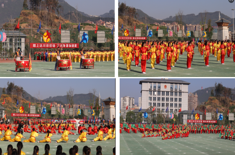 开幕式后,一场精彩纷呈的文艺盛宴拉开帷幕。民族舞《太阳出来喜洋洋》以欢快的节奏和灵动的舞姿,展现了巴山儿女的乐观豪迈;啦啦操《DADADA》活力四射,阳光少年用跃动的身姿诠释青春的激情;《法门武术》表演刚劲有力,一招一式尽显传统非遗文化的深厚底蕴;《国旗之下》以歌伴舞形式深情礼赞祖国,舞动的红绸与激昂的歌声交织,传递出新时代青少年的爱国赤诚。