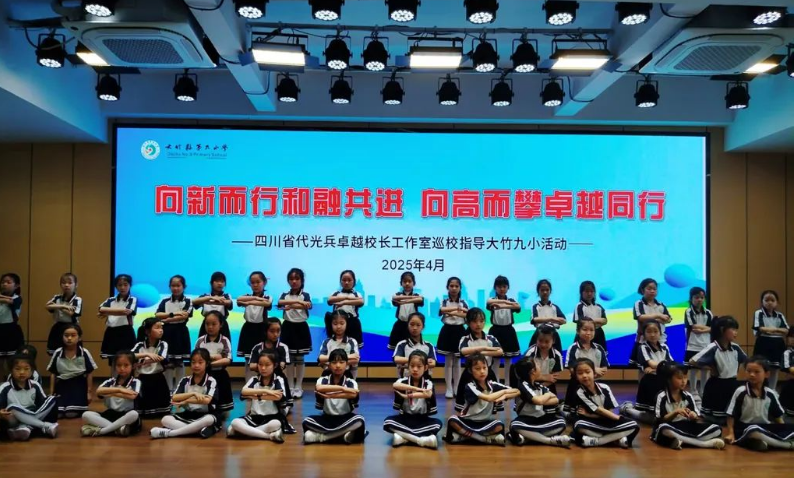4月11日,四川省代光兵卓越校长工作室第三次集中研修巡校指导活动在大竹县第九小学举行。活动以“向新而行和融共进 向高而攀卓越同行”为主题,大竹县教育局党组成员、副局长袁冬冰,达州市诗歌协会主席、巴山文学院院长龚兢业,大竹县教研室书记、主任杨平,工作室成员,竹乡名校领航计划(大竹九小)联合教研组成员,以及相关学校中层干部100余人参加活动。