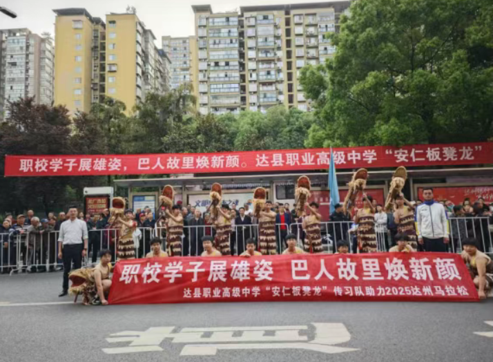 四川省达县职业高级中学:非遗文化助力马拉松 板凳龙舞出职教风采