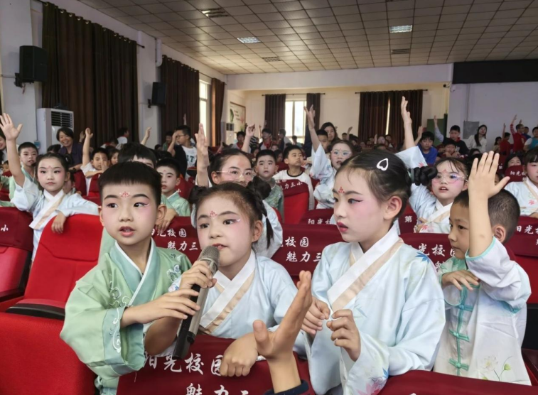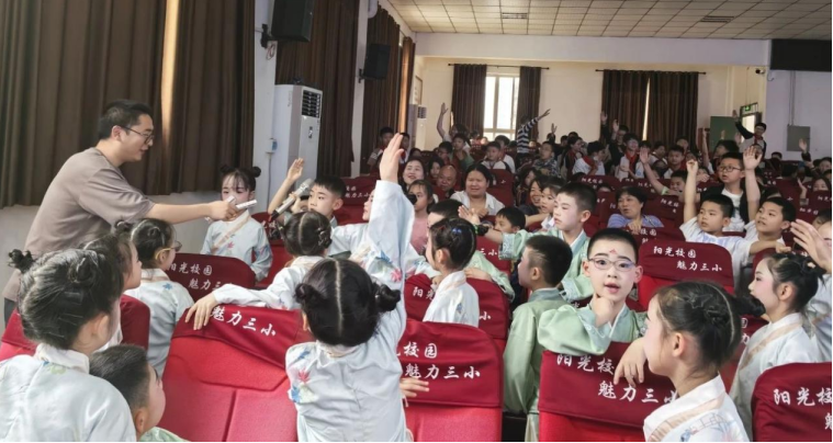 本届诗词大会在“三大亮点”中让诗词教育“活”起来。一是分级培养,全员参与。针对低、中、高段学生特点设置不同赛制:低段重朗诵体验,中高段强团队协作,覆盖必背古诗、课标诗词及课外拓展,让每个孩子都能在诗词中找到共鸣,真正实现“人人参与、层层选拔、全员成长”;二是趣味机制,创新传承。“场外求助”让观众变身“智囊团”,“诗词小导师”实时题型提示打破竞赛的紧张感,将“竞技”与“互助”结合,既考验选手实力,也传递“诗以会友”的文化精神;三是家校同心,共筑诗梦。决赛开放家长观赛席位,百余名家长现场见证孩子的成长:有的用手机记录朗诵瞬间,有的为战队抢答捏紧拳头,掌声与欢呼声交织成“家校共育”的最美音符。