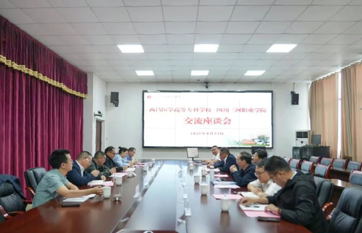 2025年4月23日,西昌医学高等专科学校党委书记陈方勇率队一行6人到四川三河职业学院考察交流,围绕教育教学、科研、教师发展等多领域开展深度交流,共谋职业教育发展新篇。