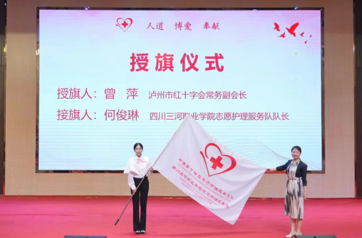 5月19日14时,川南地区首支高校成立的南丁格尔志愿护理服务队、四川三河职业学院服务队成立大会在学校学术报告厅隆重举行。中国南丁格尔志愿护理服务总队秘书长、第49届南丁格尔奖获奖者、北京朝阳医院内科主任护师刘小娟,中国南丁格尔志愿护理服务总队第二届、第三届副理事长、第44届南丁格尔奖获奖者、四川大学华西医院原护理部主任成翼娟,中国南丁格尔志愿护理服务总队副秘书长、宜宾市第二人民医院•四川大学华西医院宜宾医院党委副书记陶莲德,泸州市卫生健康委员会党组书记、主任曾妍,泸州市红十字会党组书记、常务副会长曾萍,泸州市红十字会副会长胡坤,合江县委常委、宣传部部长张霜,合江县政府副县长齐小渝,学校校长彭钢等领导出席,合江县卫生健康局、红十字会、人民医院、中医医院等有关单位代表,学校师生代表近500人参加了成立大会。会议由学校党委副书记、副校长王华主持。 全体与会人员观看了中国南丁格尔志愿护理服务总队宣传片,共同感受这支队伍在全国范围内传递的人道力量与护理温情。伴随着庄严的国歌,成立大会徐徐拉开序幕。学院护理专业教师邓敏宣读国际红十字与红新月运动八项基本原则。 陶莲德向学校服务队赠送南丁格尔画像,学校卫生健康学院院长、志愿服务队副队长李玉连接受画像。 中国南丁格尔志愿护理服务总队四川三河职业学院志愿护理服务队成立大会圆满落幕,标志着我校红十字志愿服务事业迈入专业化发展新阶段。作为新时代职业教育的践行者,服务队将以"人道、博爱、奉献"的红十字精神为指引,秉承“护佑生命、竭诚奉献、专业精湛、勇气非凡”南丁格尔精神,持续深化校地共建、产教融合,构建“专业教育+志愿服务”双轨育人体系。未来,这支充满朝气的队伍将扎根基层社区,在应急救护培训、健康科普宣教、“三救三献”公益行动中锤炼技能本领,在老年护理服务、乡村健康筛查等民生实践中厚植医者仁心,以专业技能守护生命健康,以仁爱之心践行人道使命,以职教担当服务基层民生,为健康泸州建设和基层卫生事业高质量发展注入澎湃青春力量,奋力谱写新时代职业院校服务地方发展的崭新篇章!
