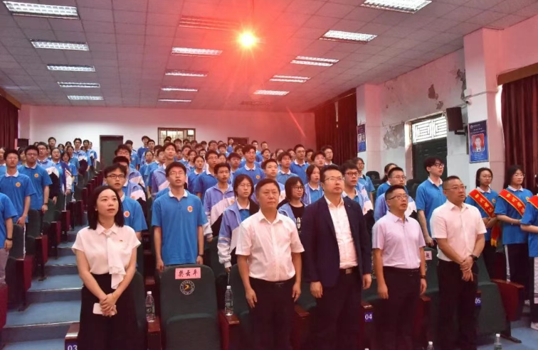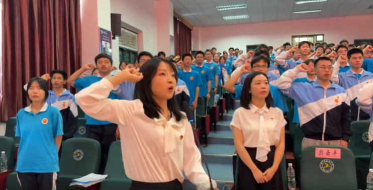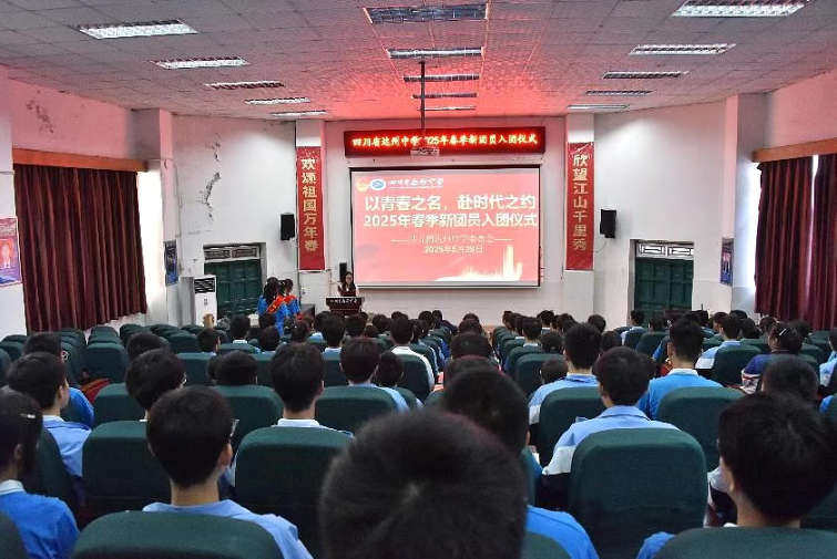 5月29日,四川省达州中学一场庄重而意义深远的新团员入团仪式顺利举办。一群朝气蓬勃、怀揣梦想的青年学子齐聚一堂,他们以力争向上向善的精神风貌,共同迎接这一光荣时刻,庄严宣誓,志愿加入中国共产主义青年团。新一批热血青年接过时代火炬,以青春之名,赴时代之约! 主持人李曾黎老师向新团员表示衷心的祝贺和诚挚的欢迎,并介绍今天出席活动的领导和老师:达州中学党委副书记彭仁俊、高二年级主任潘远权、高一年级主任张敏、初中部年级主任潘远超、杨柳校区党建专员樊云平、团委负责人陈滢和党员教师代表袁丽老师。 议程一 奏唱国歌 入团仪式在庄严嘹亮的国歌声中拉开序幕,全场师生整装肃立,齐声高唱国歌,热血在心中激荡。 议程二 宣读新团员名单 同学们被光荣地批准加入共青团。达州中学团组织又将增加新鲜血液,增添新的力量。学校团委负责人陈滢书记宣读新团员名单。每一个名字都仿佛是一颗闪耀的星星,代表着这些同学在追求进步道路上的不懈努力。 议程三 颁发团员证与佩戴团徽 在全场热烈的掌声中,在场领导给团员们颁发团员证与团徽。光荣的团员证、闪耀的团徽,承载着责任与荣誉。新团员双手接过这份青春契约,小心翼翼地将团徽别在胸前。指尖触碰徽章的瞬间,自豪与坚定在眼中浮现,身姿愈发挺拔。 议程四 入团宣誓 由党员教师代表袁丽老师领誓,新团员们面向团旗立正、右手握拳、举过右肩,用最真挚的情感、最坚定的声音,许下了青春的誓言。一字一句,都是对自我的鞭策,都是对未来的承诺。相信他们会牢记入团誓词,切实履行团员的权利和义务,按照团员标准严格要求自己,做一名合格的团员。 议程五 新团员代表发言 接着,新团员代表高2024级1班韩金彦同学发言,她以激昂的语调表达对共青团的向往与热爱,承诺将牢记入团誓言,以团员标准严格要求自己,以实际行动践行共青团员的使命,在学习和生活中发挥先锋模范作用,用实际行动为团旗增光添彩。 议程六 优秀团员代表发言 高2023级37班刘宥宁同学明确了团员应具备的政治素质、道德品质和业务能力,激励新团员自觉履行光荣义务,充分发挥先进青年的模范带头作用。 议程七 校领导致辞 学校党委副书记彭仁俊对新团员们提出了殷切希望和要求。他指出,各位团员应该积极履行团员的职责,增强团员意识和发挥团员的先进性,推动团组织的发展,希望新团员们能时刻牢记共青团员的身份,牢记誓言,践行承诺,用青春的热情和汗水,在今后的学习生活中勤学苦练,学好本领,以身作则,成为有理想、敢担当、能吃苦、肯奋斗的新时代好青年。