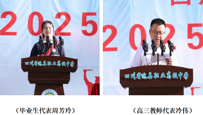 优秀毕业生代表周芳玲和高三教师代表冷伟先后发言。学生代表深情回顾了高中三年的学习生活,分享了成长感悟与学习经验,表达了对母校、老师和同学的感恩之情;教师代表则以真挚的话语,寄语毕业生们要志存高远、勇于追梦,在未来的人生道路上书写精彩篇章。