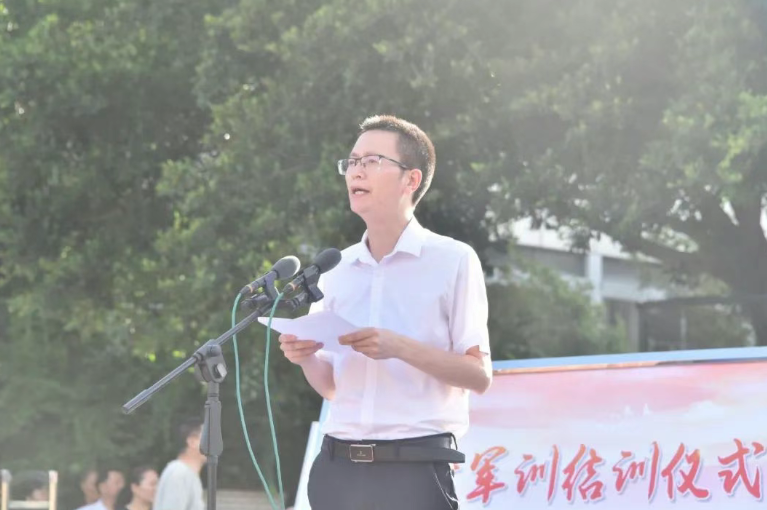 他希望同学们在脱下迷彩换上校服后,能将操场的正步化作课堂的笔步,将训练的口号变作读书的声浪,把军训赋予的自律、坚韧、团结等品质融入高中三年的学习生活中,让“严格要求”刻进日常,让“追求卓越”成为习惯,用“永不言弃”定义成长,让青春在奋斗中绽放最绚丽的光彩。