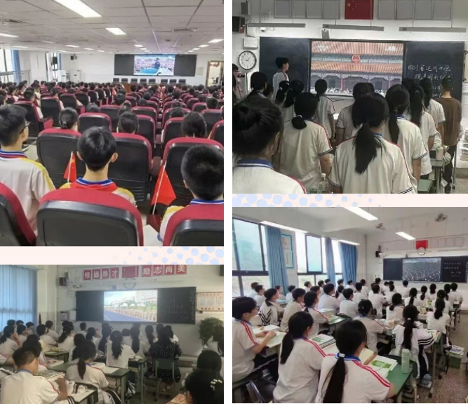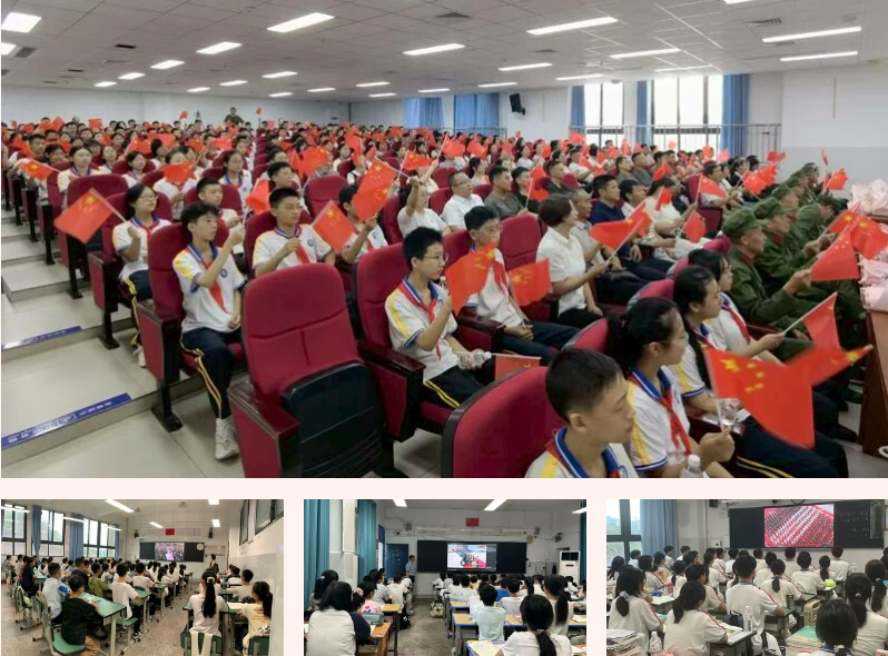 9月3日,四川省达川中学组织全校师生收看了九三阅兵。除各班教室、各处室和各年级组办公室集中收看外,学校还组织部分学生、党员代表在三里校区中和楼阶梯教室参加了“达州市达川区纪念中国人民抗日战争暨世界反法西斯战争胜利80周年主题活动”。
