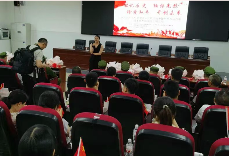 观看阅兵结束后,英雄老兵代表讲述自己当年在战场上的亲身经历,对比现在先进的国防建设,以及和平、安宁、幸福的生活环境,激励同学们“要刻苦努力,爱科学,爱国防,只有我们国家强大了才不会受八十年前那样的羞辱”。